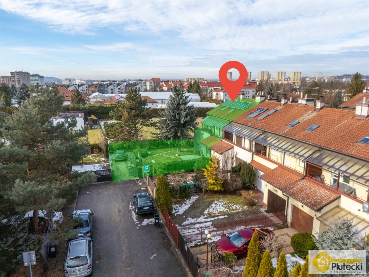 Dom usytuowany jest na prostokątnej działce o powierzchni ok. 5,2 ara i stanowi skrajny segment szeregu, co zapewnia większą prywatność, więcej światła oraz komfort codziennego życia. Na posesji znajdują się także dwa zewnętrzne miejsca postojowe.