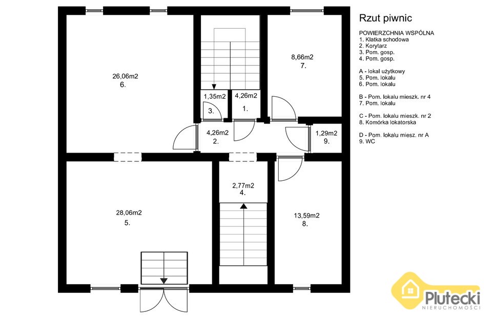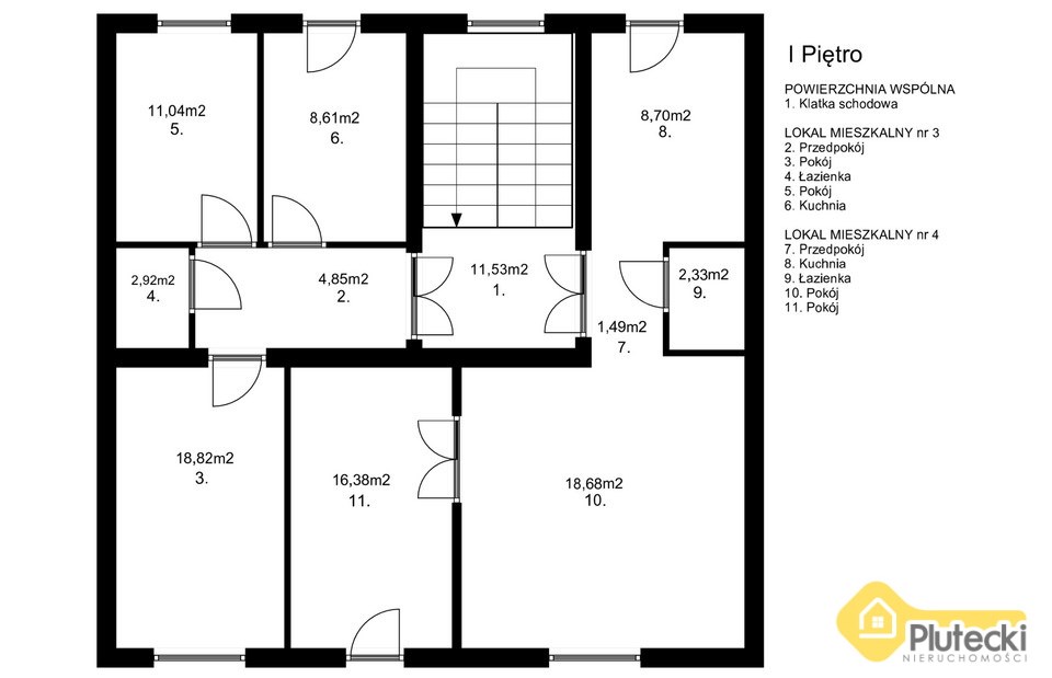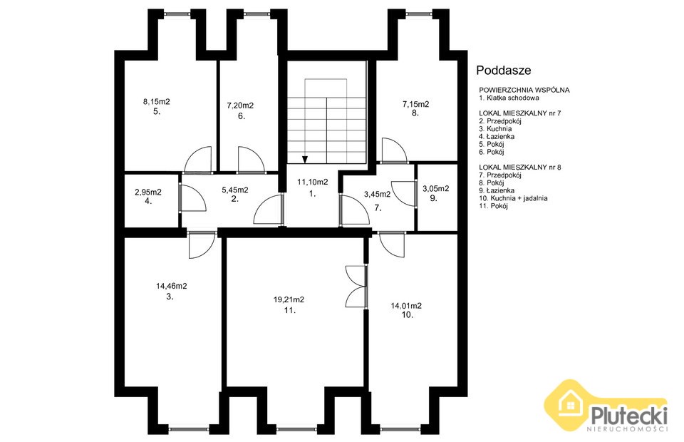 W kamienicy znajduje się 8 samodzielnych lokali, na każdym piętrze po 2 lokale.