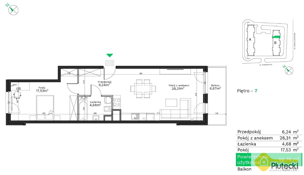| Powierzchnia użytkowa [m2] | 56,76 m² |