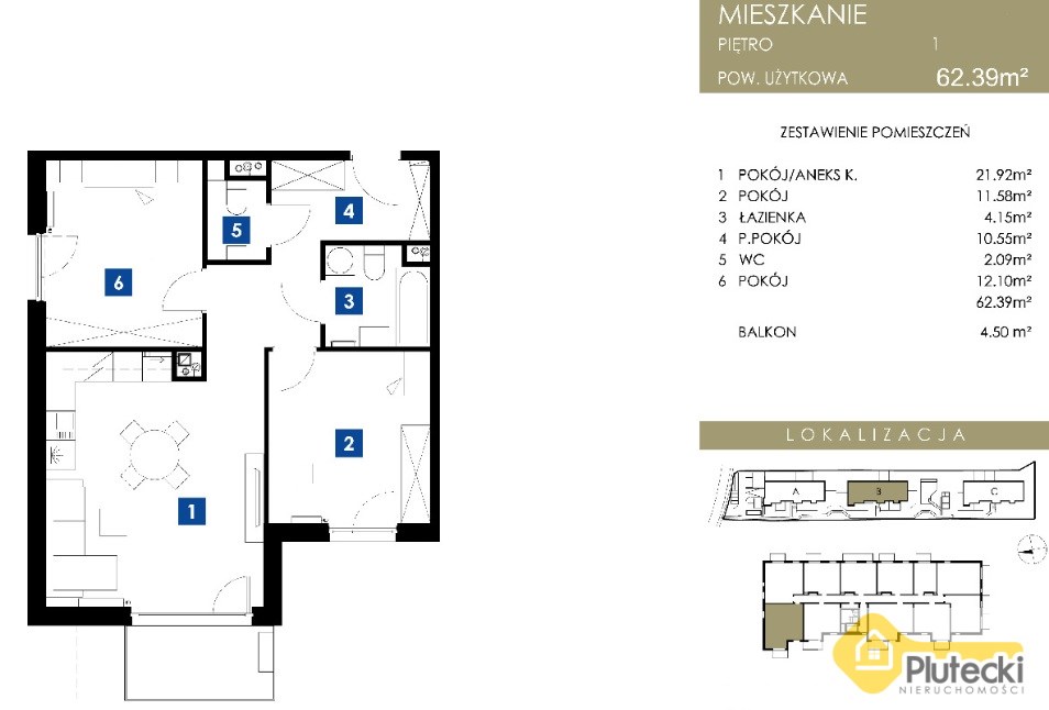 | Powierzchnia | 62,39 m² |